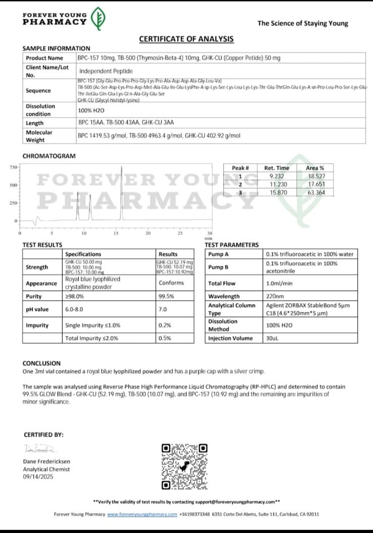 Glow Peptide is a cutting-edge peptide blend uniquely formulated to combine the skin-regenerating effects of GHK-Cu with the healing and tissue-repair benefits of BPC-157 and TB-500. Designed for advanced scientific study, Glow Peptide is being explored for its potential to support skin rejuvenation, wound healing, muscle and tendon recovery, and systemic anti-inflammatory activity.